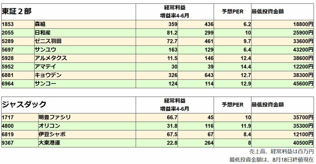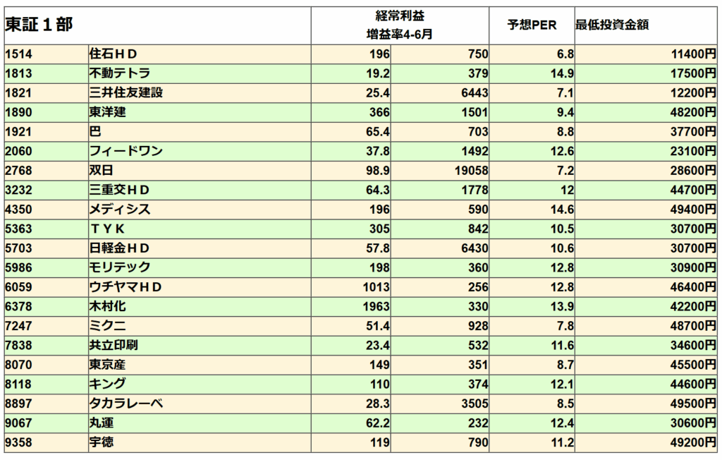 下記表は、東証1部、2部、ジャスダック、マザーズ上場銘柄を対象にしています。